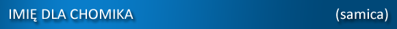 Czekamy na Twoją propozycję imienia dla chomika - samicy (po zaakceptowaniu dopiszemy Twoją propozycję imienia do poniższej listy)