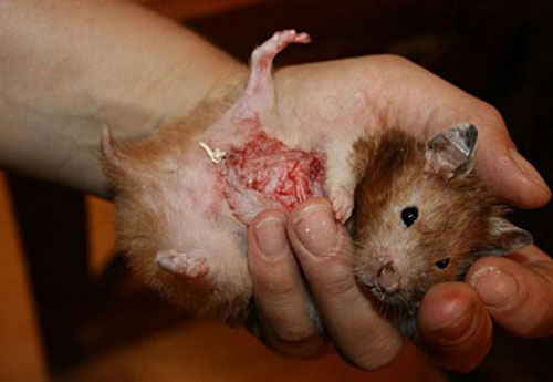 Poniżej zamieściłem drastyczne zdjęcie, na którym widać, co może się stać, jeśli trzymamy w jednym miejscu więcej niż jednego chomika.